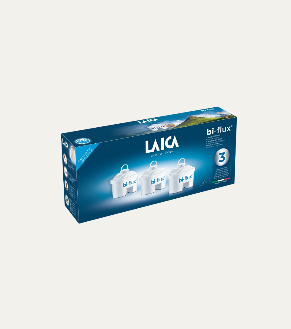 LAICA bi-flux® Universal er et gennemtestet vandfilter, udviklet til at forbedre smag og kvalitet af almindeligt postevand. Dette 3-pak er ideelt til dig, der ønsker en stabil løsning med filtreret vand i hverdagen – uden at skulle huske at købe nyt filter hver måned.